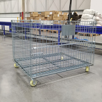 Contenedor de malla de alambre plegable de ahorro de espacio de fabricante de China con ruedas jaula de almacenamiento galvanizada plegable apilable